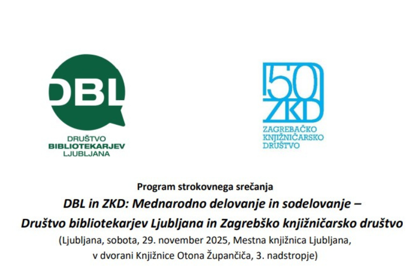 U Ljubljani 29.11.2025. održat će se skup: Mednarodno delovanje in sodelovanje – Društvo bibliotekarjev Ljubljana in Zagrebško knjižničarsko društvo